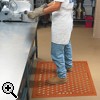 • Popis: Rohož cobeFOOD je navržena speciálně pro potravinářské provozy. Je vyrobena z antibakteriální nitrilové pryže, která je odolná rostlinným olejům, živočišným tukům, citrusům, a dokonce i rybímu tuku. Hladké drenážní otvory a konstrukce spodní strany neposkytují prostor pro hromadění baktérií nebo zbytků potravin, stejně jako její lehce vzorovaný povrch, který zabezpečuje potřebnou adhezi, když je rohož mastná nebo mokrá. Pro snadnější manipulaci a čištění má rohož zabudované úchyty. Tlustá pryžová konstrukce izoluje od studené a tvrdé podlahy, robustní podpěry zespod umožňují rychlý odtok tekutin a zvyšují úroveň komfortu při stání na rohoži. Rohož cobeFOOD - dokonalé řešení problému únavy při práci vestoje v potravinářském průmyslu.